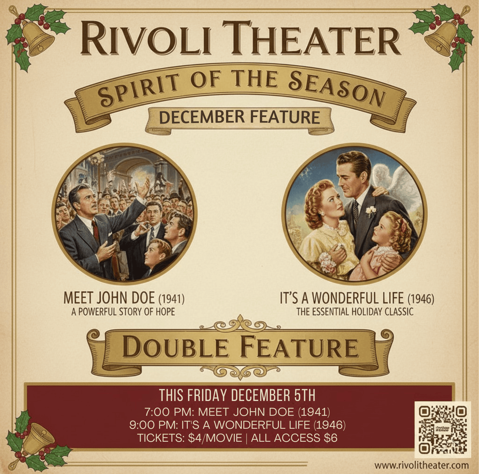 - Historic Charm: Step into the historic charm of the Rivoli Theater, a beloved classic venue with a touch of vintage character. While our space may not be the most polished, we’re proud to feature a state-of-the-art 35-foot LED video wall capable of displaying any digital video in stunning clarity, alongside reliable audiovisual equipment to bring your event to life.