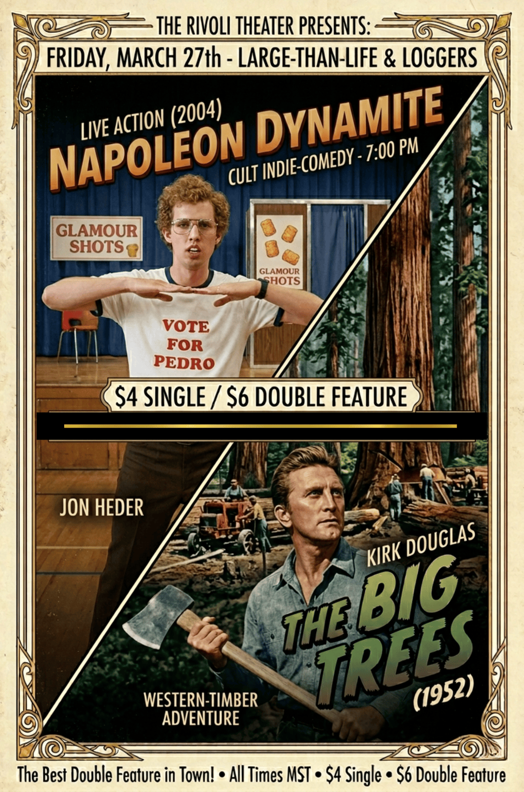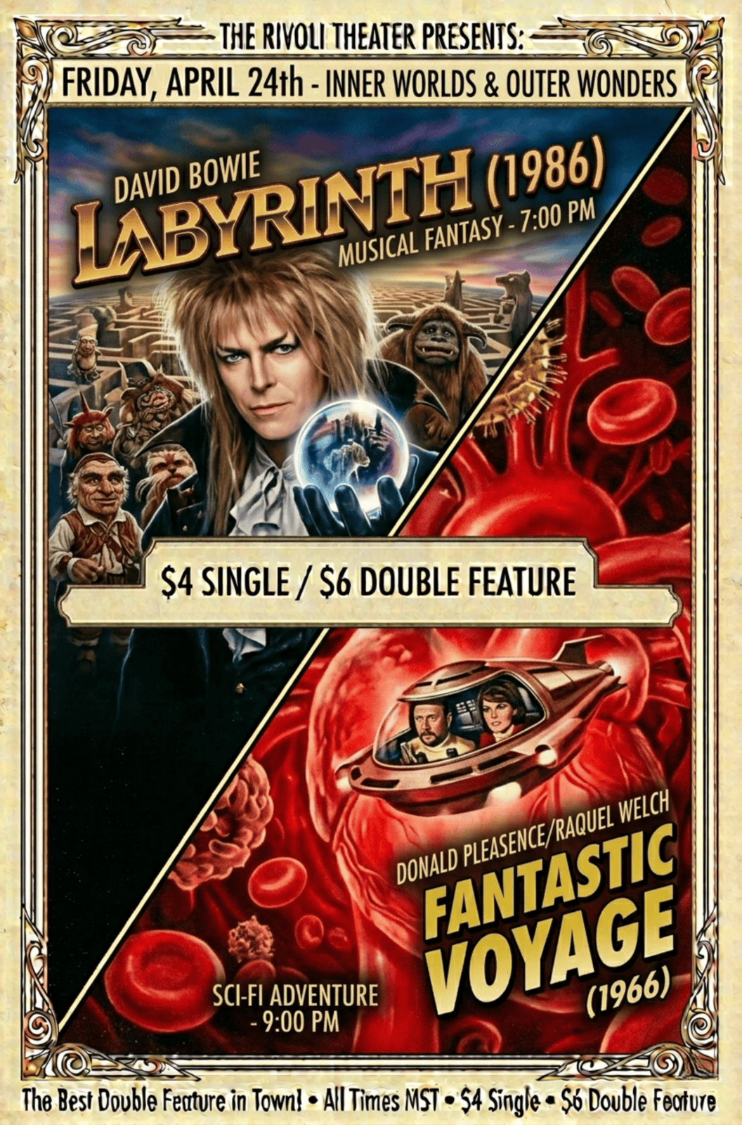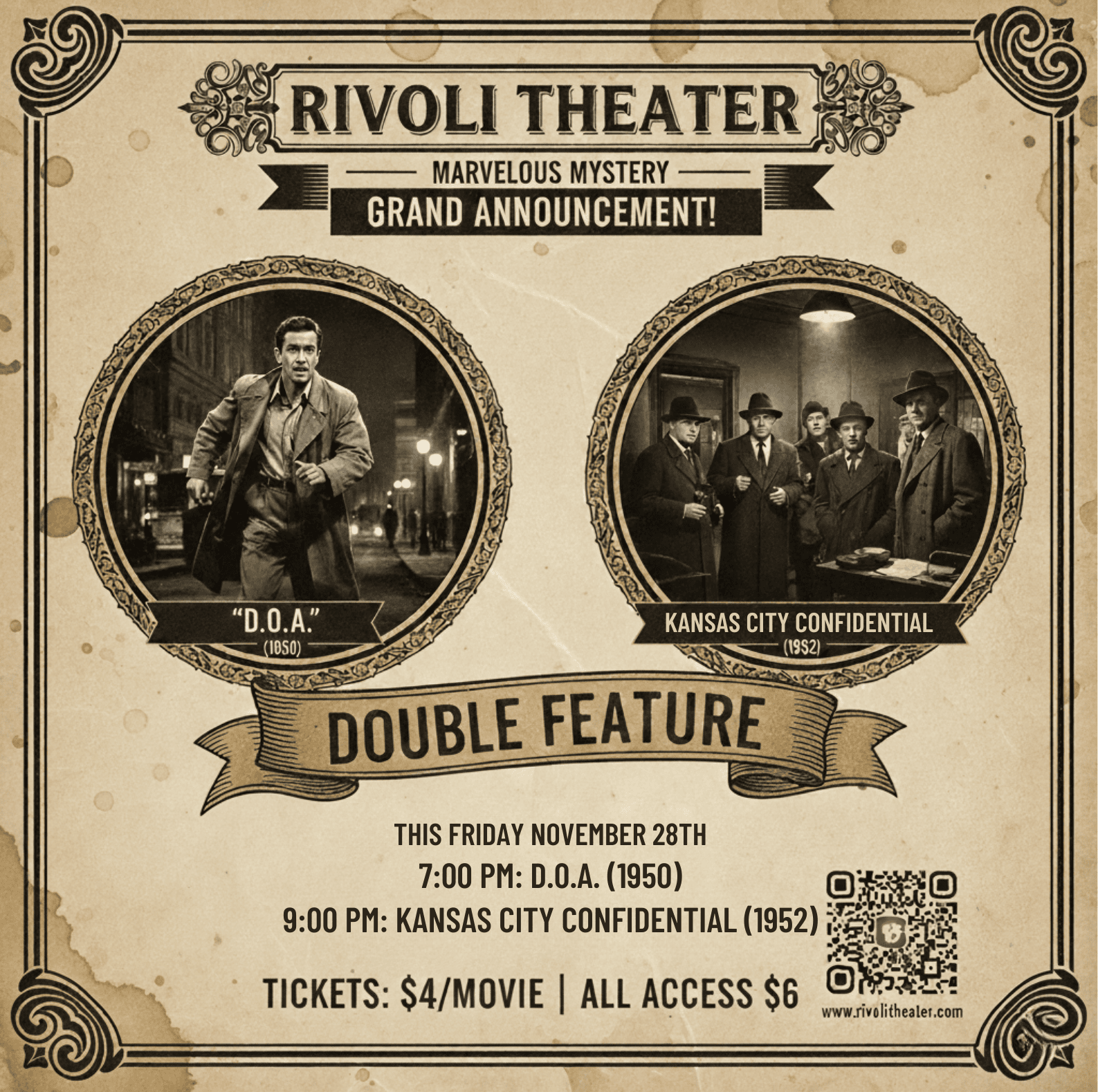 - Historic Charm: Step into the historic charm of the Rivoli Theater, a beloved classic venue with a touch of vintage character. While our space may not be the most polished, we’re proud to feature a state-of-the-art 35-foot LED video wall capable of displaying any digital video in stunning clarity, alongside reliable audiovisual equipment to bring your event to life.