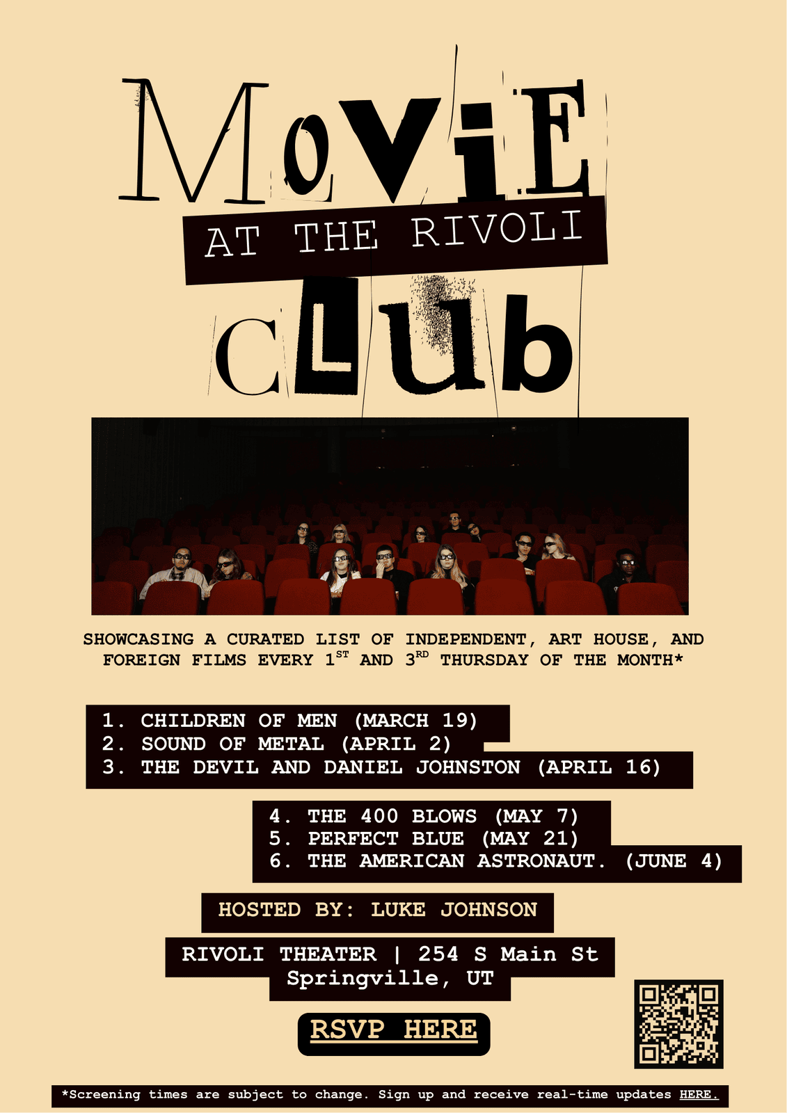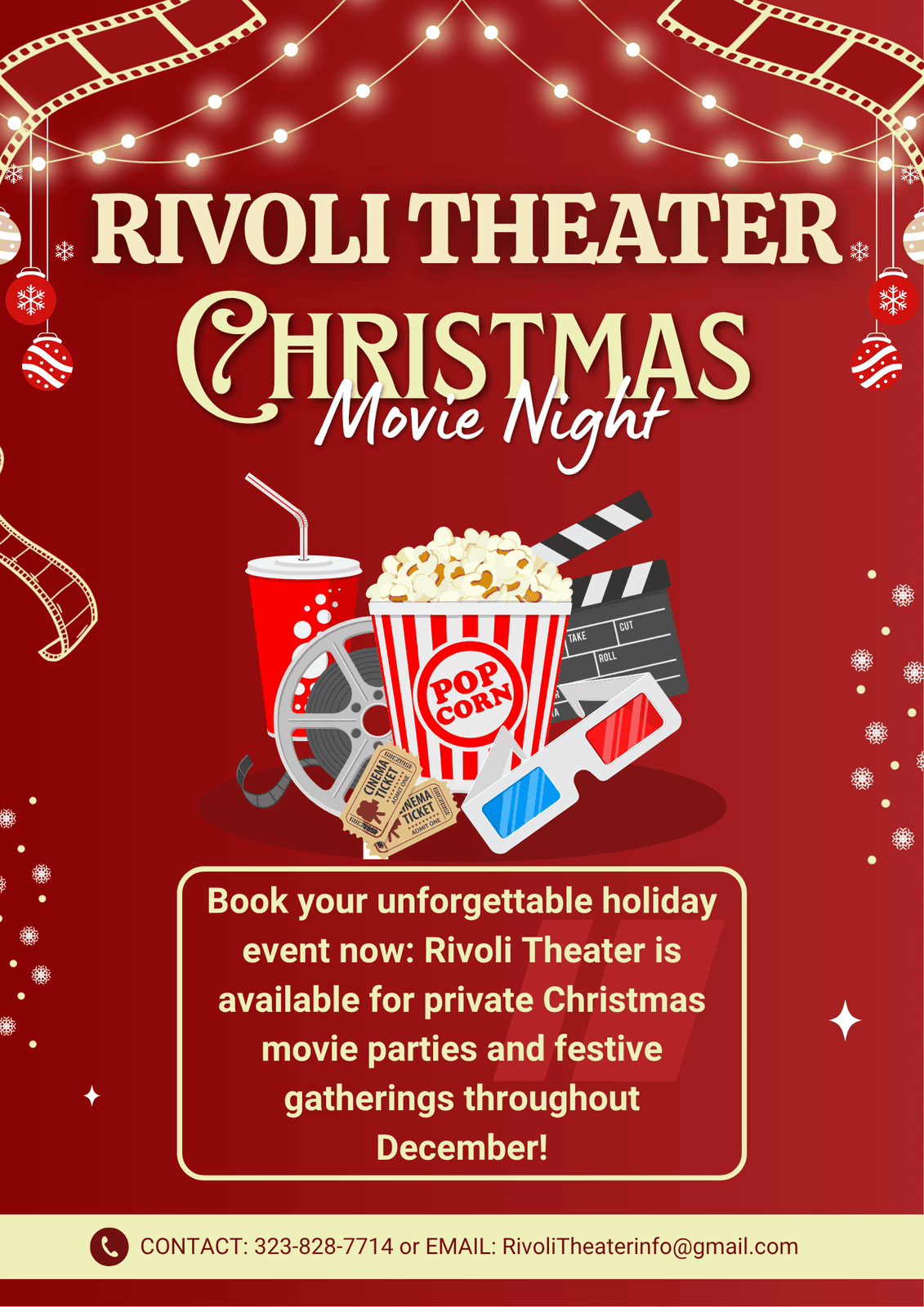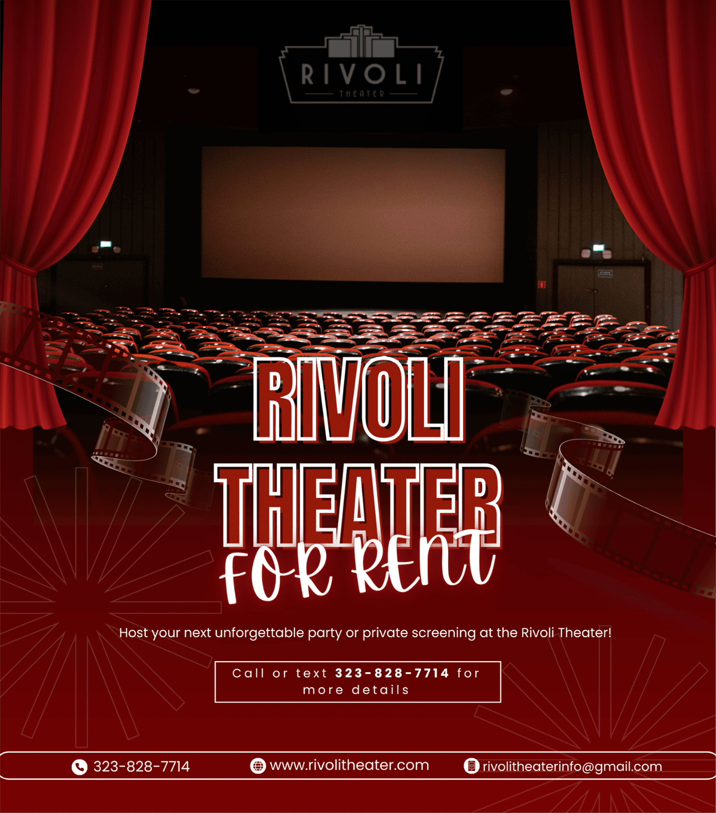 Ready to make your event unforgettable? Contact our team to discuss availability, pricing, and customization options. Let the Rivoli Theater be the stage for your next big moment! You may contact MelissaCannonJohnson@gmail, or RivoliTheaterinfo@gmail.com