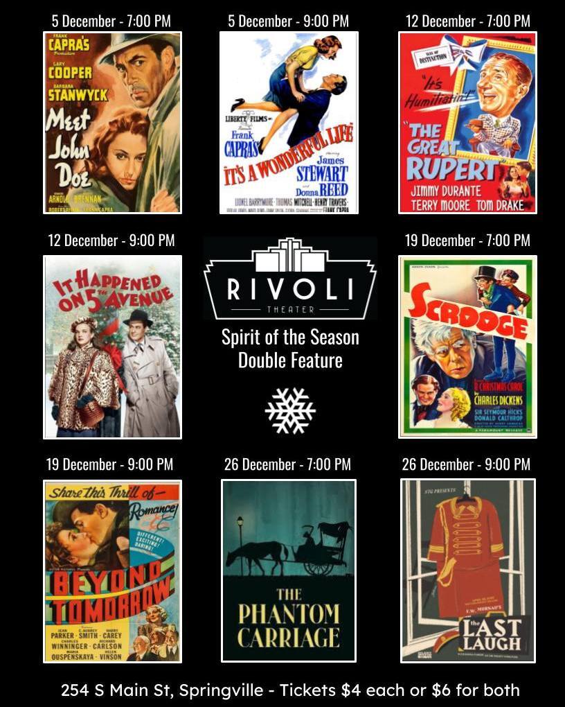 Classic movies every Friday at 7 PM. Tickets @ $4 each